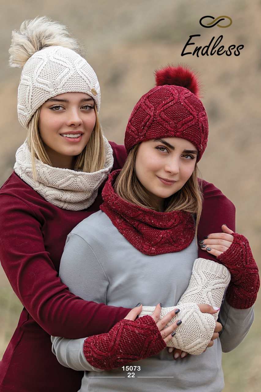ست 3 تکه شال و کلاه و ساق دست 15074